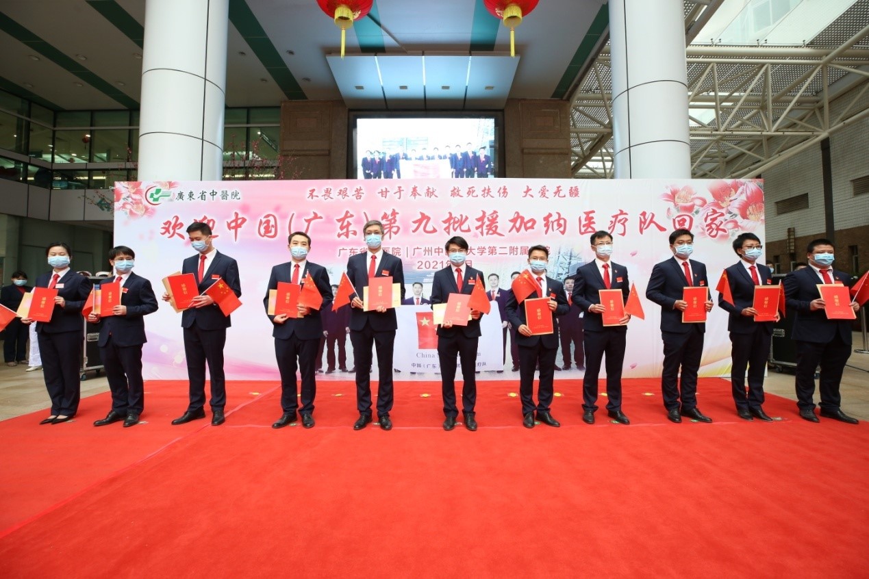 根据国家卫生健康委对援外医疗工作的统一部署,受广东省卫生健康委委派,由学校第二附属医院(广东省中医院)、广州市番禺区中心医院、广州市番禺区何贤纪念医院组建的中国(广东)第九批援加纳医疗队,克服重重困难,出色完成医疗援助任务,平安回到广州。