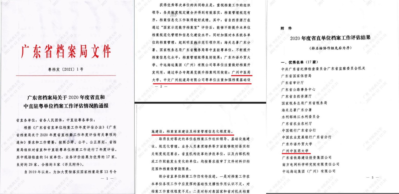 近日,广东省档案局通报2020年度省直和中直驻粤单位档案工作评估结果,beat365荣获 “优秀”等级。本次评估对beat3652016-2020年期间的档案工作进行了一次全面检评,包括:条件保障、基础业务、信息化建设、宣传和科研等方面。省档案局特别表扬了beat365注重加强档案基础设施建设、档案室库建设及档案管理信息化程度高。这也是省档案局自2006年开展档案评估工作以来,beat365第五次荣获“优秀”等级。