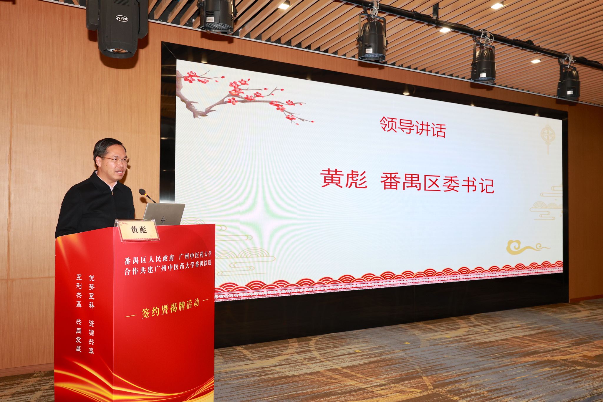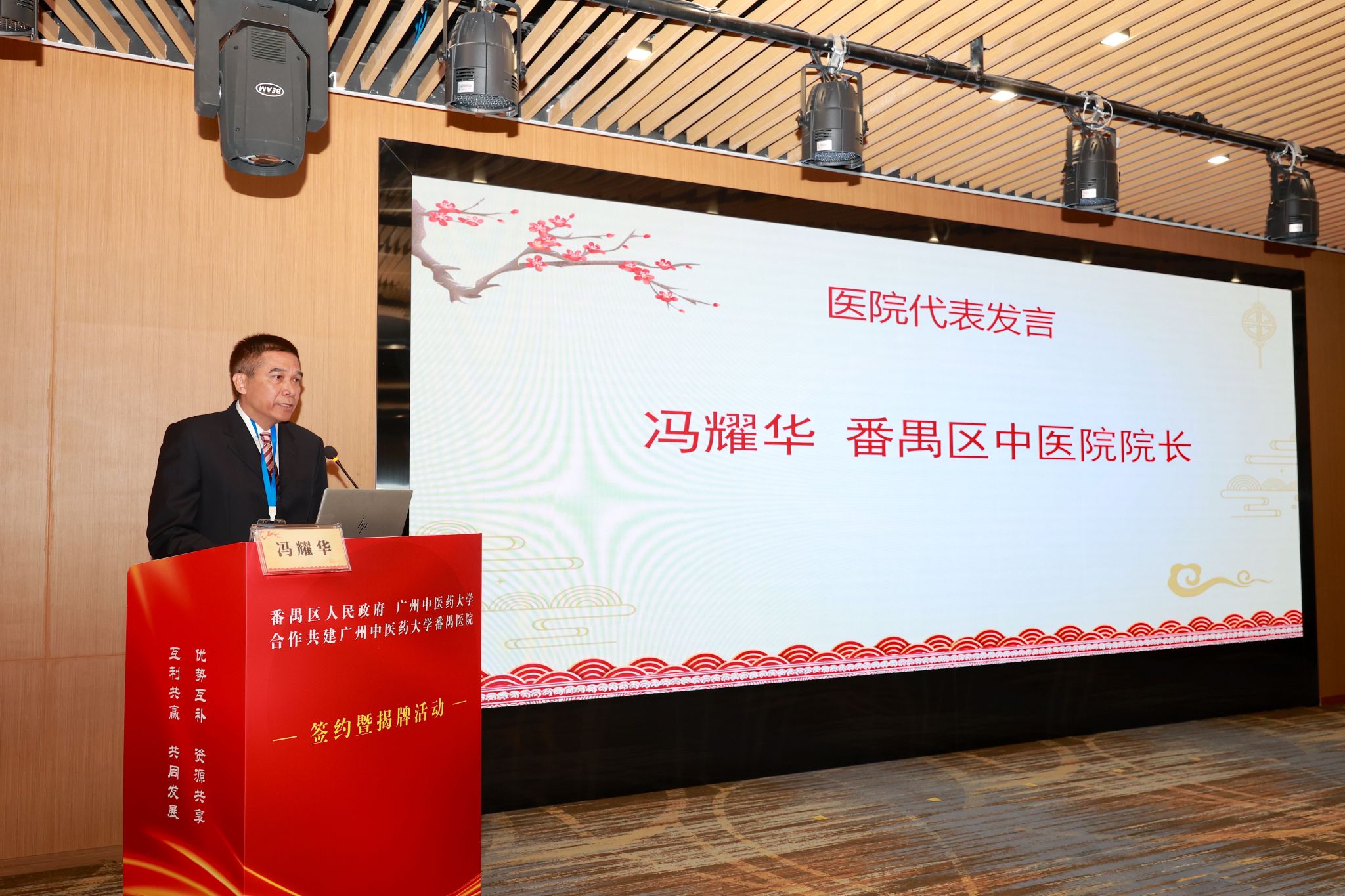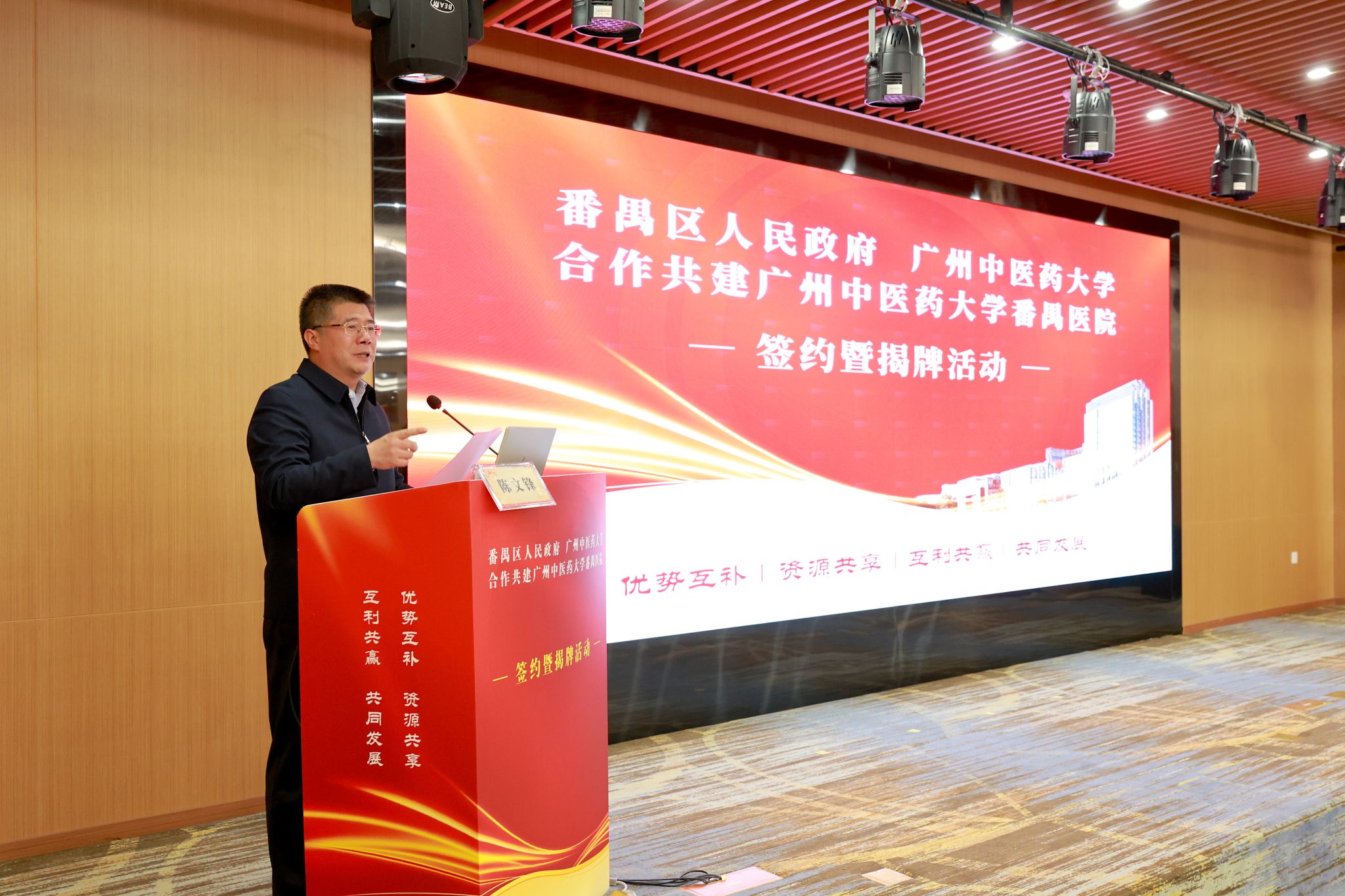 陈文锋在致辞中对番禺区人民政府、beat365中文官方网站合作共建beat365中文官方网站番禺医院表示热烈的祝贺和期待。他表示,要以“双一流”和高水平大学的建设来赋能beat365中文官方网站番禺医院的建设发展。树立“大广中医”理念,参照学校直属附属医院的要求和标准,为番禺医院党的建设、教学、科研、人才队伍建设、学科专科建设、学生培养管理等方面全面赋能提供“一揽子”政策支持和资源供给。支持包括beat365中文官方网站番禺医院在内的各校政共建医院走特色创新发展之路,助力助推番禺区中医院再上新台阶。