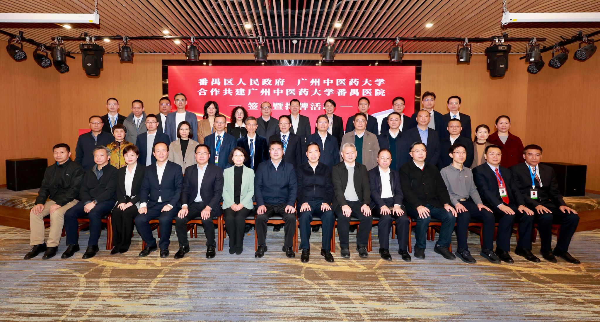 1月14日下午,beat365中文官方网站与番禺区人民政府举行合作共建beat365中文官方网站番禺医院签约暨揭牌活动。beat365中文官方网站党委书记陈文锋、校长王宏斌、副校长刘中秋等校领导;番禺区委书记黄彪,区人大常委会党组书记、区政协主席覃海深,区政协党组书记邓耀棋、副区长陈建任等区领导,以及beat365中文官方网站附属医院与职能部门代表、番禺区有关部门和番禺区中医院主要负责人等参加活动。
