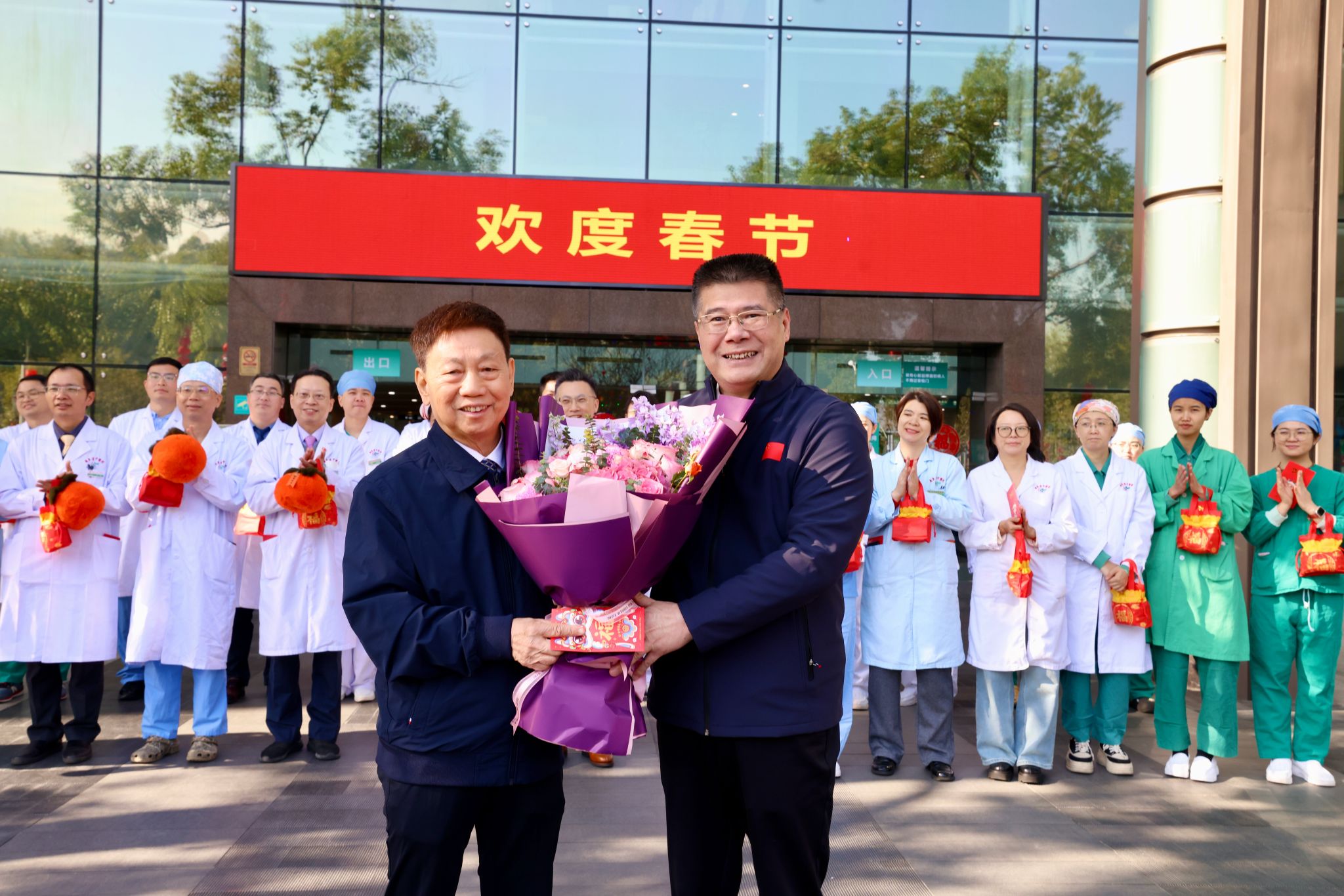 1月29日,农历乙巳蛇年大年初一,学校党委书记陈文锋、校长王宏斌看望慰问学校及附属医院一线工作人员,向坚守岗位的广大教职员工、医护人员致以新春祝福和诚挚问候。学校党委常委、副校长潘华峰参加慰问,党委办公室、党委组织部、党委宣传统战部、人力资源部、校长办公室、财务部、保卫部、总务后勤部、现代教育技术中心相关负责同志陪同慰问。