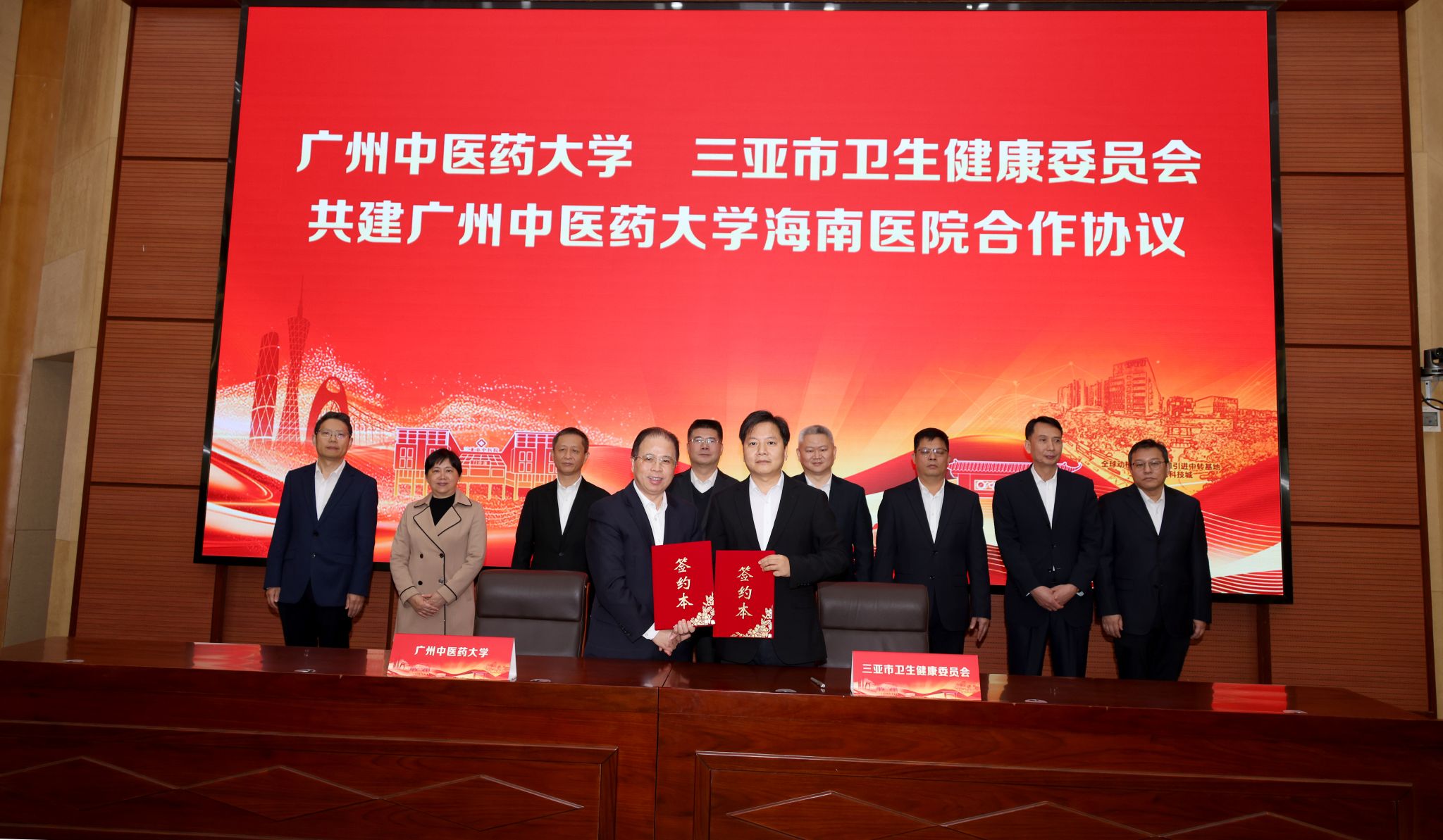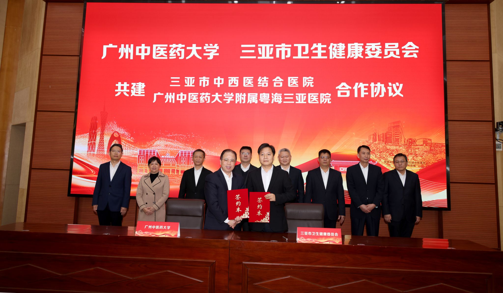 副校长刘中秋与三亚市卫生健康委员会党委书记、主任胡玉蕾签订共建三亚市中西医结合医院(beat365中文官方网站附属粤海三亚医院)合作协议