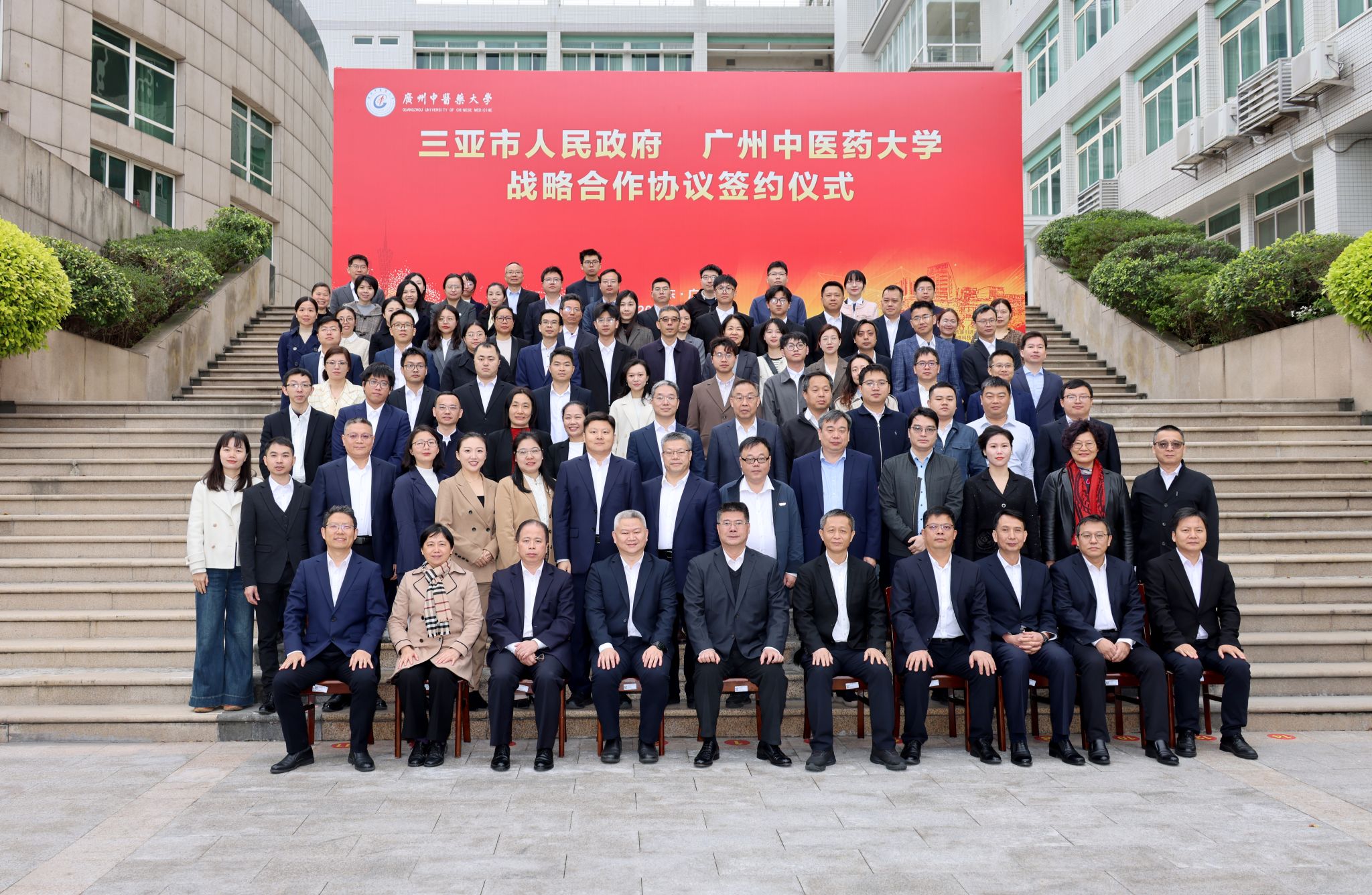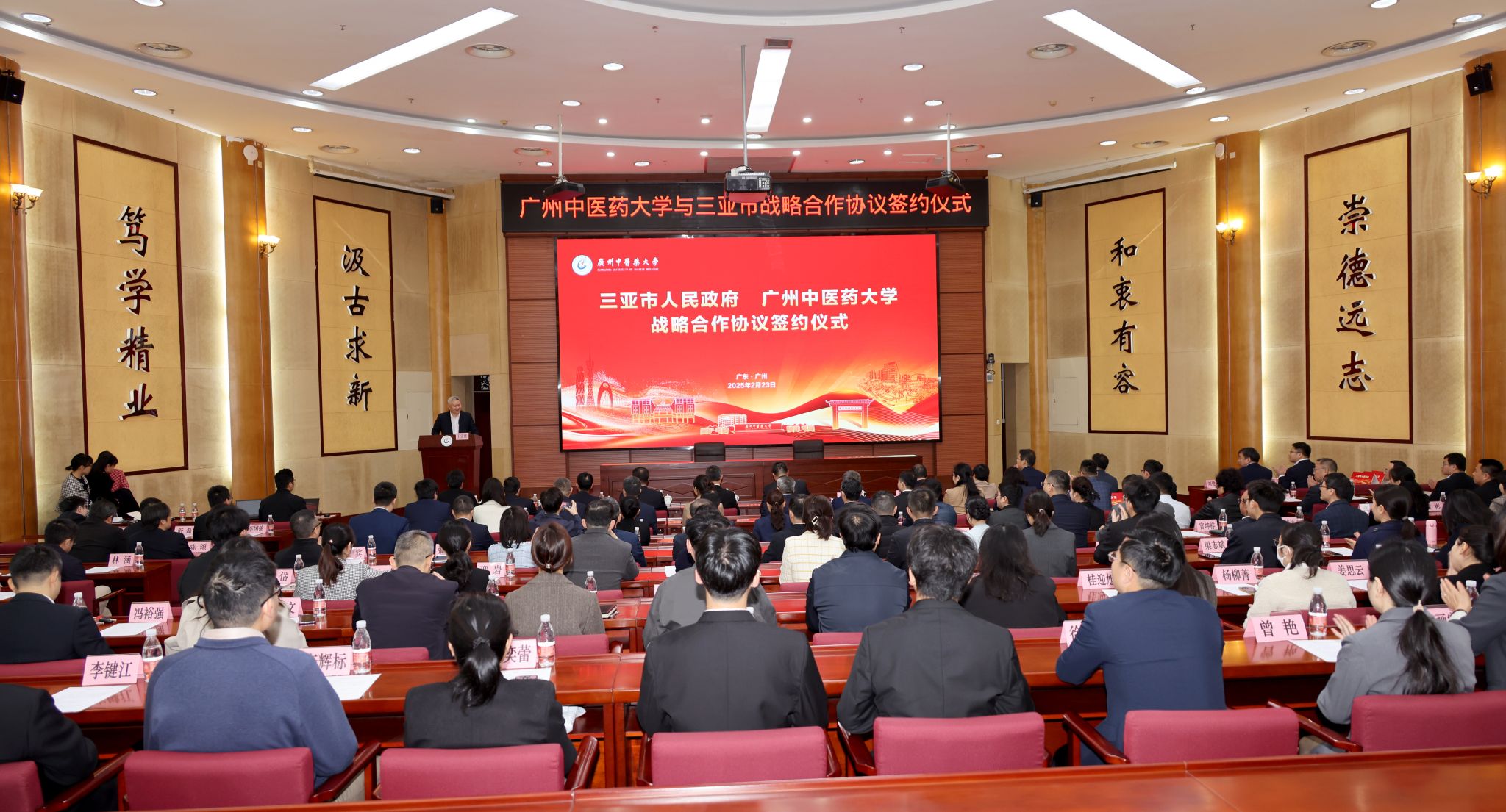 2月23日上午,beat365中文官方网站与三亚市人民政府战略合作协议签约仪式在学校大学城校区举行。这是beat365中文官方网站贯彻落实习近平总书记重要讲话精神和2025年全省高质量发展大会精神,主动服务国家战略和广东海南相向发展战略,持续推进《beat365中文官方网站关于推动附属医院高质量发展的实施意见》,促进中医药传承创新发展的又一重要举措。学校党委书记陈文锋致辞,校长王宏斌主持签约仪式,三亚市人民政府副市长何世刚,学校领导,三亚市卫生健康委员会领导,学校第一、第二、第三附属医院、附属粤海三亚医院、三亚市中医院领导,学校援建专家代表等出席签约仪式。