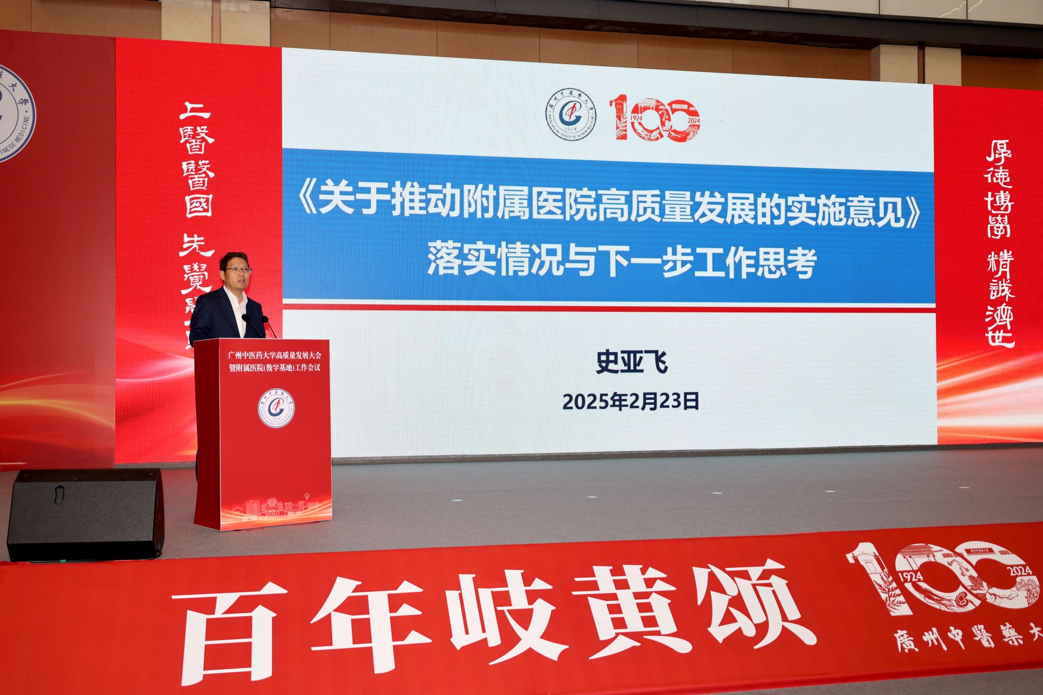 “在百舸争流千帆竞发中,慢发展就是退步!全校上下要牢固树立以实绩论英雄导向,坚持守正创新、苦干实干,全面推进学校教育科技人才‘三位一体’综合改革取得新成效,着力培育中医药新质生产力向现实生产力转化落地成势,用中医药教育、医疗资源优势服务地方经济社会建设,用心用情用力答好‘何以再造一个新广中医’这一时代必答题,为全省在推进中国式现代化建设中走在前列作出广中医新的更大贡献!”2月23日-24日,beat365中文官方网站高质量发展大会暨附属医院(教学基地)工作会议在茂名医院新院区召开,学校党委书记陈文锋在会议中这样强调。