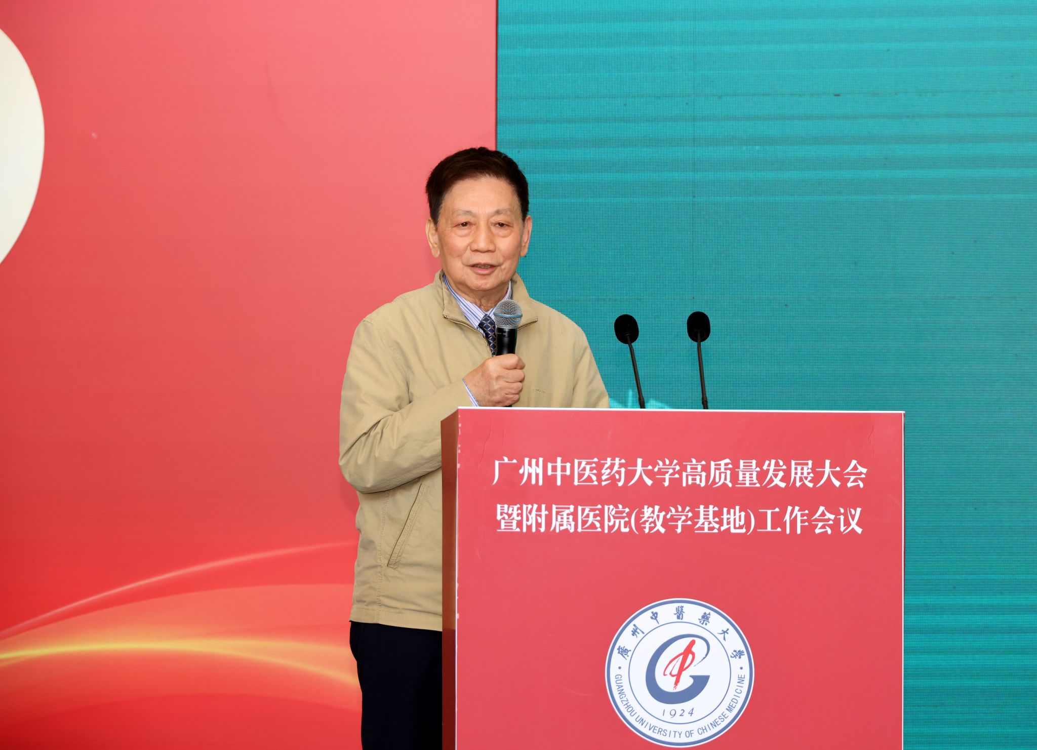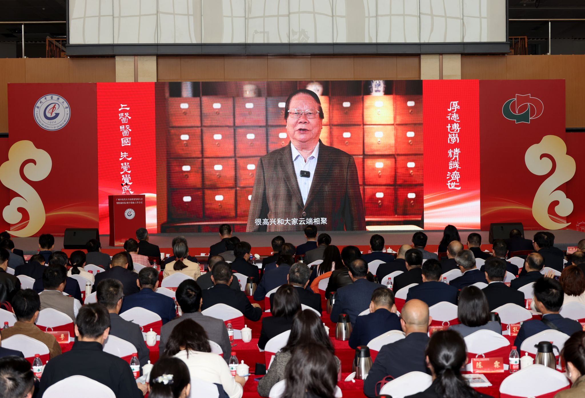 国医大师周岱翰教授通过视频致辞。他表示,学校应坚守为党育人、为国育才的初心使命,培育具有医者仁心的时代新人;秉持传承精华、守正创新理念,加快中医药现代化、产业化进程;坚定立足湾区、走向世界的发展步伐,让中医药扬帆出海、造福世界。