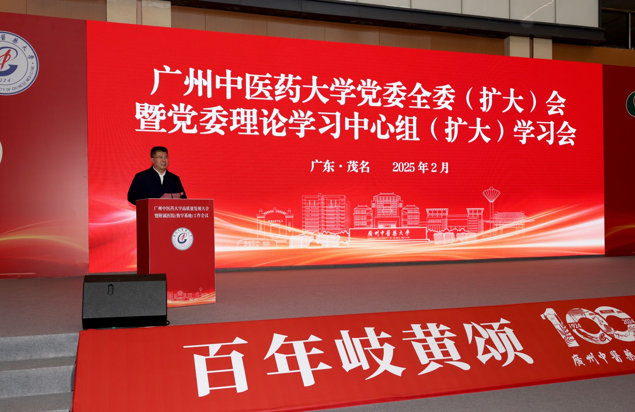 此次会议是学校深入贯彻落实广东省高质量发展大会精神,加快建设优质高效的中医药服务体系,优化中医药人才培养体系,促进医教研协同高质量发展,助力学校“双一流”和高水平大学建设,按照学校“转作风、重实干、开新局、争一流”解放思想再出发工作部署组织召开的重要会议。茂名市委书记、市人大常委会主任庄悦群,茂名市副市长王小慧,广东省中医药局党组成员、副局长刘涛,全体校领导出席会议。