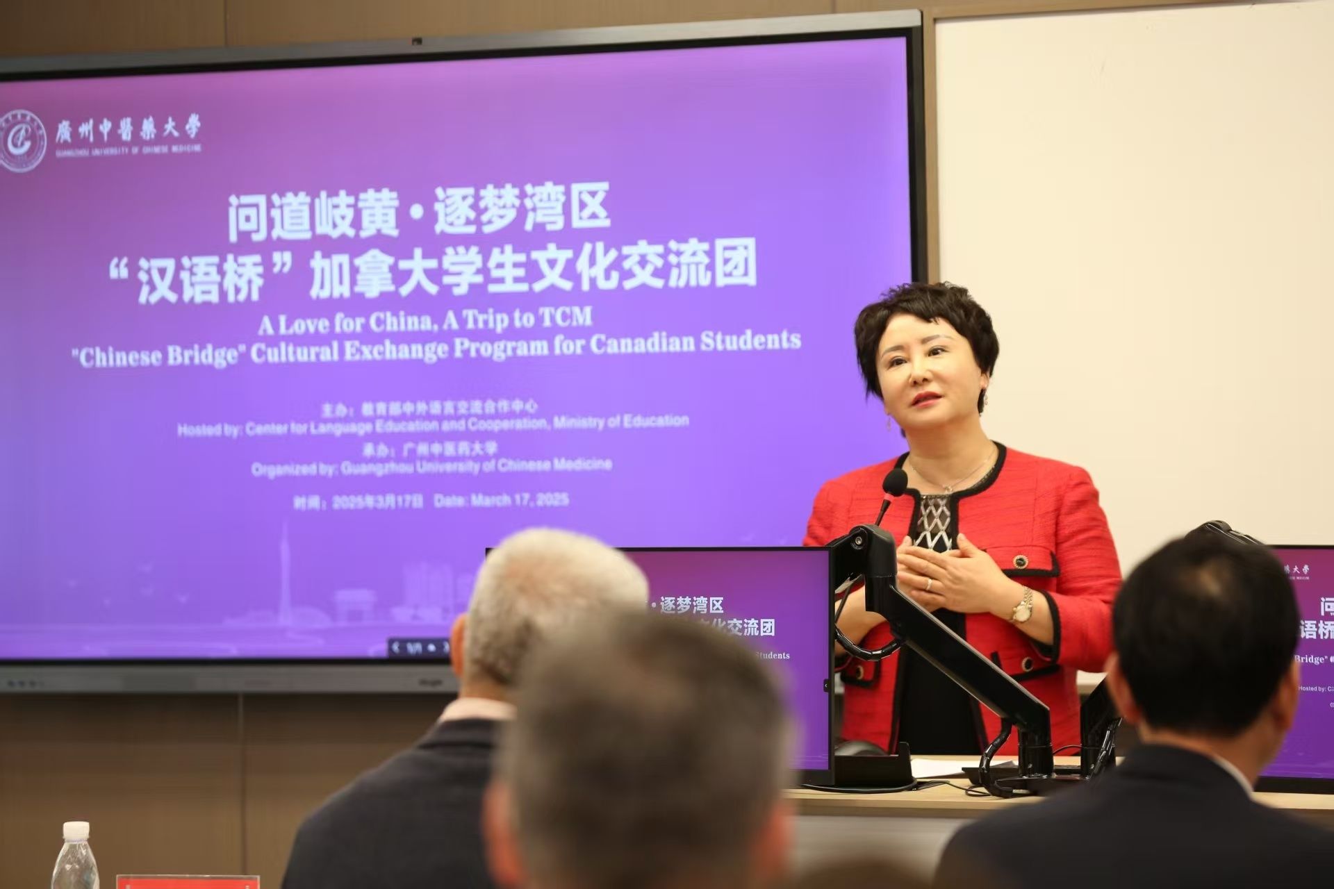 3月17日,“汉语桥”加拿大学生文化交流团在beat365中文官方网站举办开营仪式。此次中医药文化探索之旅的主题为“问道岐黄·逐梦湾区”,来自加拿大针灸中医学院的18名师生参与其中,共同深度体验中华传统文化与中医药的独特魅力。校长王宏斌致欢迎辞,学校党委常委、副校长郭鸿主持仪式。