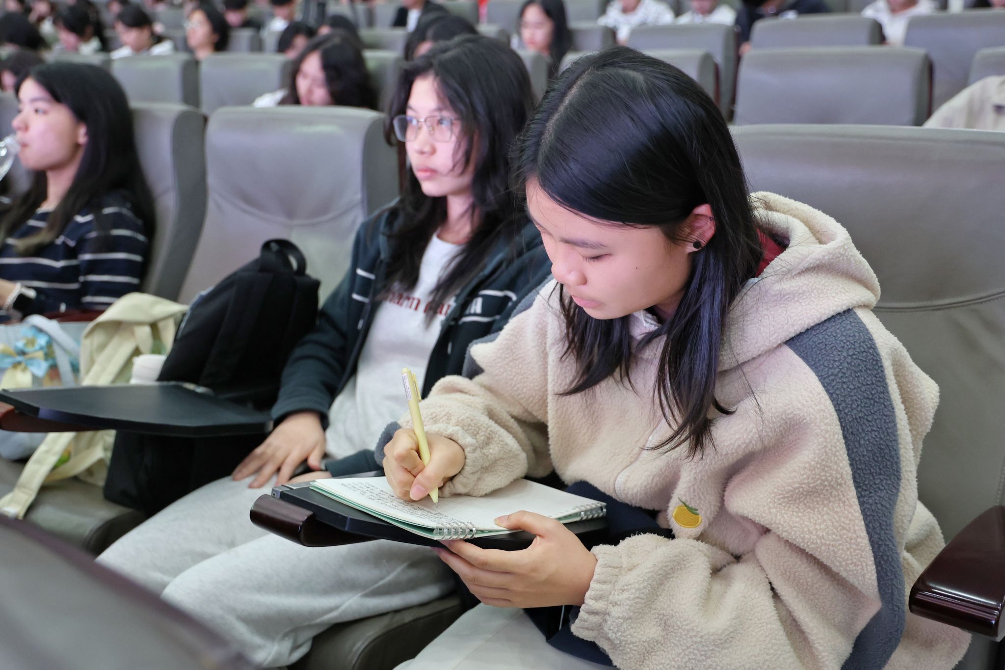 王宏斌希望同学们在生活中要有格局、有愿景、有策略,提高沟通交流的能力,多维度放眼观世界等综合素质,在事物的比较和思考中进行学习;要有远大理想,更要有勇立潮头、担当使命的气势,靠近光、追逐光、成为光;要学会认知,抓住事物的主要矛盾和本质特征,要学会思辨,明辨是非。