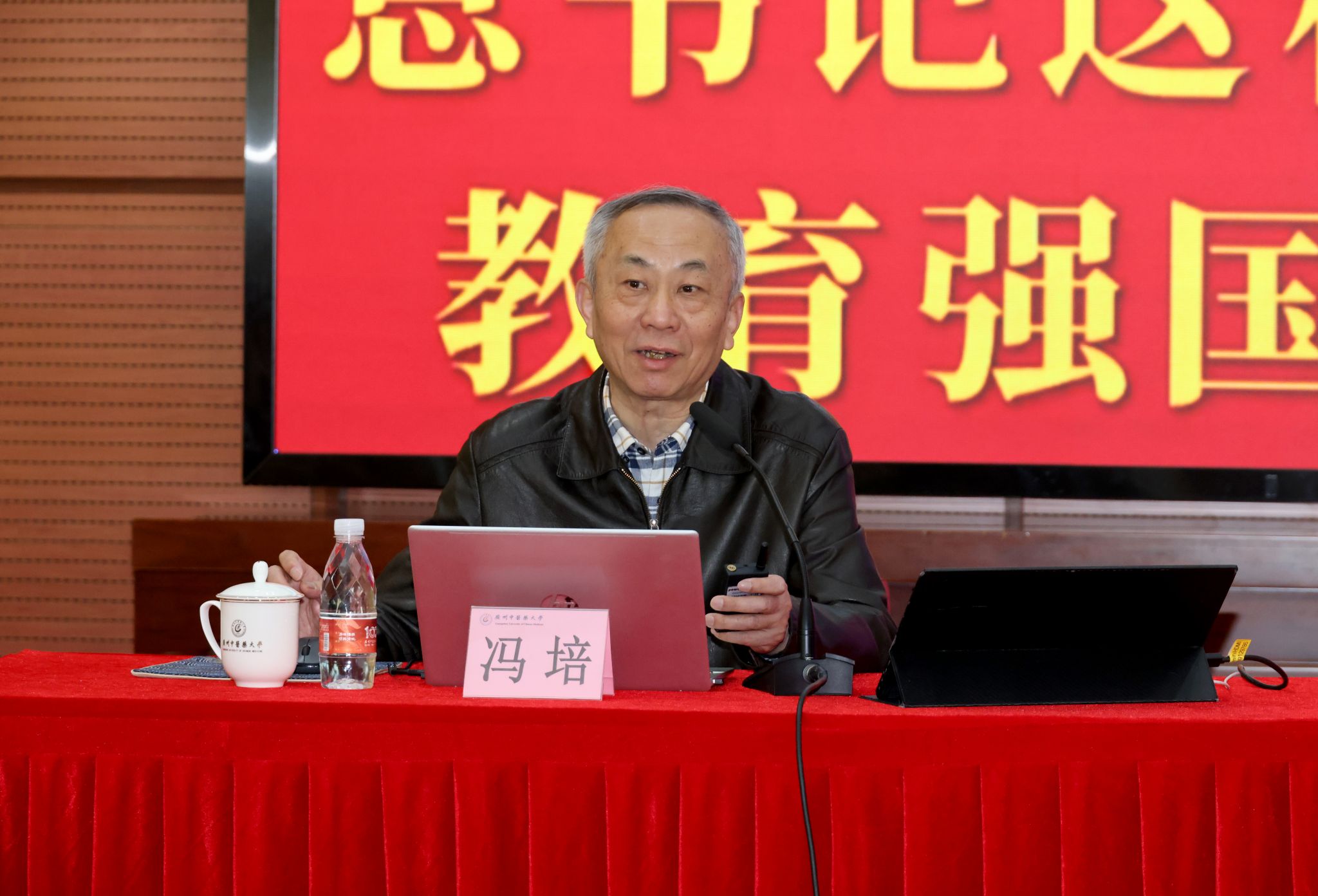 首都经济贸易大学冯培教授以《在教育强国中彰显思政引领力》为主题做报告。报告中,冯培从“为何引领”、“用何引领”、“如何引领”阐释“为谁培养人”、“培养什么人”、“怎样培养人”,他围绕思政引领力的战略属性、政治属性、人民属性就如何提升思政引领力、落实立德树人根本任务,以生动鲜活的学生工作案例,深入解读了教育强国建设规划纲要要求。