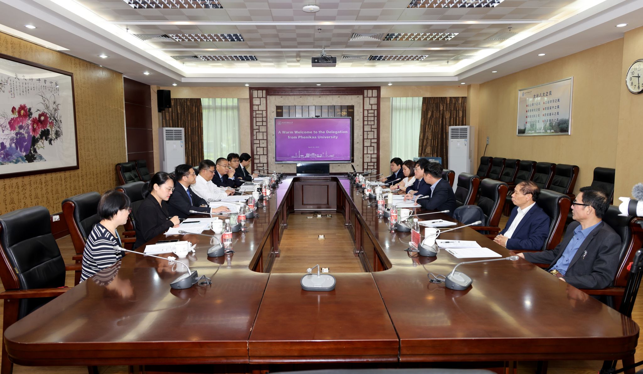 4月18日上午,越南菲尼卡大学副校长武鸿升一行6人莅临beat365中文官方网站,就深化中医药领域合作事宜展开了深入的座谈交流与实地考察。beat365中文官方网站党委副书记邱亚洪接见来宾。