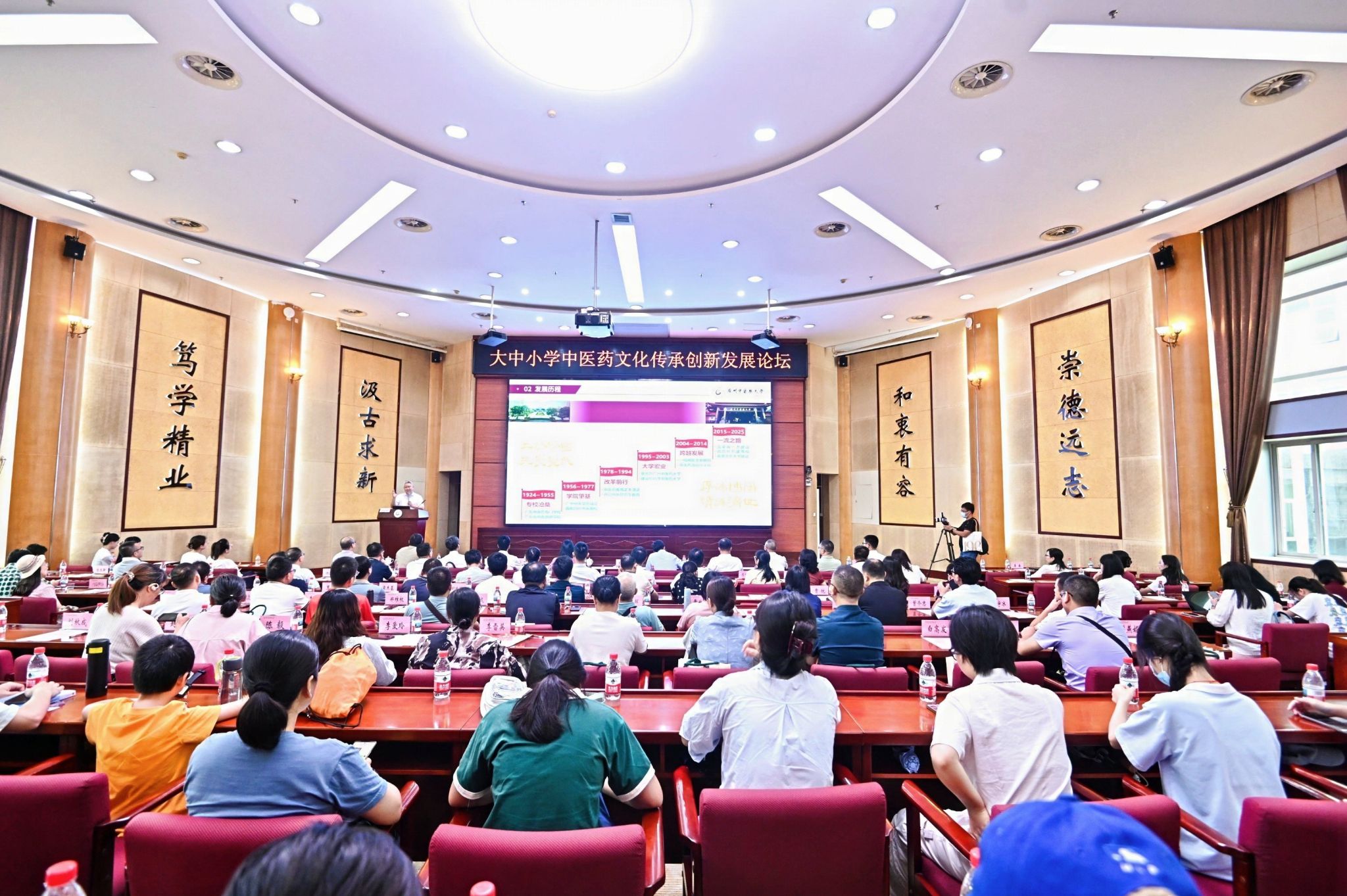 在大中小学中医药文化传承创新发展论坛上,beat365中文官方网站校长王宏斌从历史沿革、专业建设、学科发展等方面,全方位介绍了学校在中医药人才培养、科学研究以及社会服务等领域做出的卓越成果。学校党委常委、副校长、第二附属医院(广东省中医院)院长张忠德分享了自己从医学生到医者的经历,以“难走的路,从不拥挤”的人生哲思,勉励青年学子锤炼品格,成长为有灵魂、有担当、有能力的时代新人。