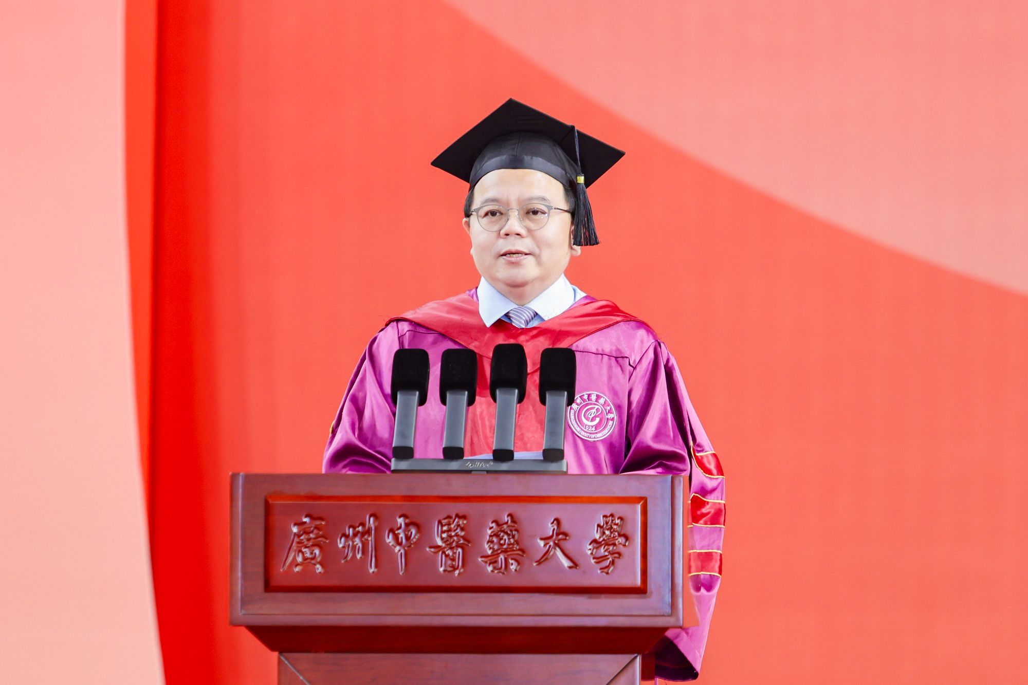 本科毕业生代表、2020级中医学专业郑嘉敏同学表示,站在新的起点,将把在广中医汲取的智慧与力量,化作悬壶济世的担当与勇毅。