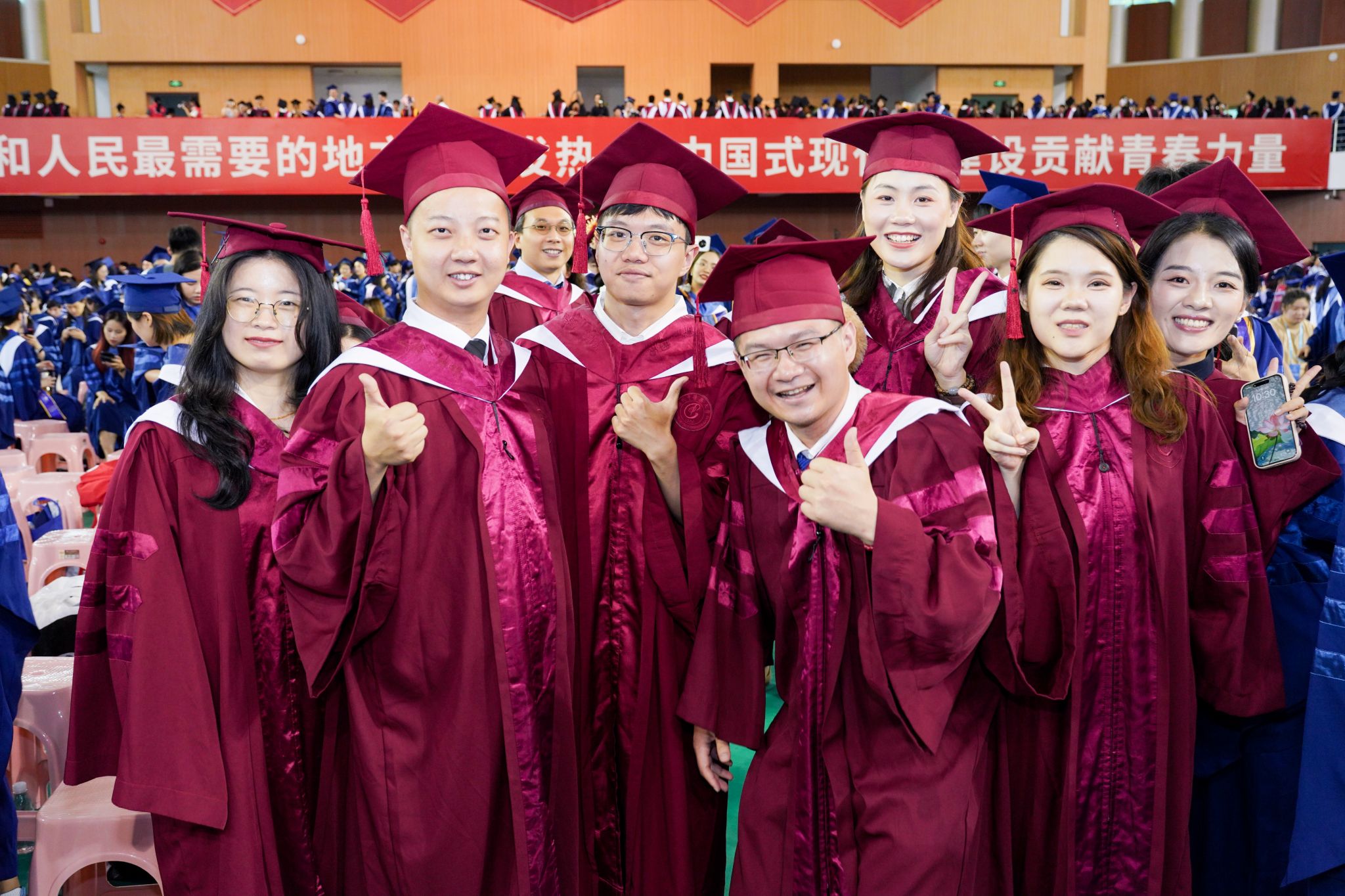 此时此刻,看到大家朝气的面庞,感觉光阴好像流水飞快,日日夜夜将我们的青春灌溉。你们青春的抱负和爱心善举,时时浮现在我的眼前。刘鸿源、林雨乔等同学接力投身“西部计划”,让中医的“简便廉”惠及塔克拉玛干沙漠的边疆百姓;李嘉儿、荆琦、张心瑜等同学练出“针”本领,赛出“针”水平,代表学校参加全国高等院校针灸推拿临床技能大赛,获得全国团体一等奖,展示了广中医孩子的青春风采!刘源、张碧航、黎春红、陈佳欣等同学在疾驰的列车上利用所学知识急救乘客,展现了医者担当。还有一群人,他们是学校培养的1615名定向医学生,十年间,奔赴粤东西北66个县区73个乡镇,扎根基层医疗卫生事业。还有在座的许多同学,你们在参与学校治理、科研创新、志愿服务、文化建设等方面表现优异,在你们身上闪耀着可贵的广中医精神。广中医为你们骄傲!