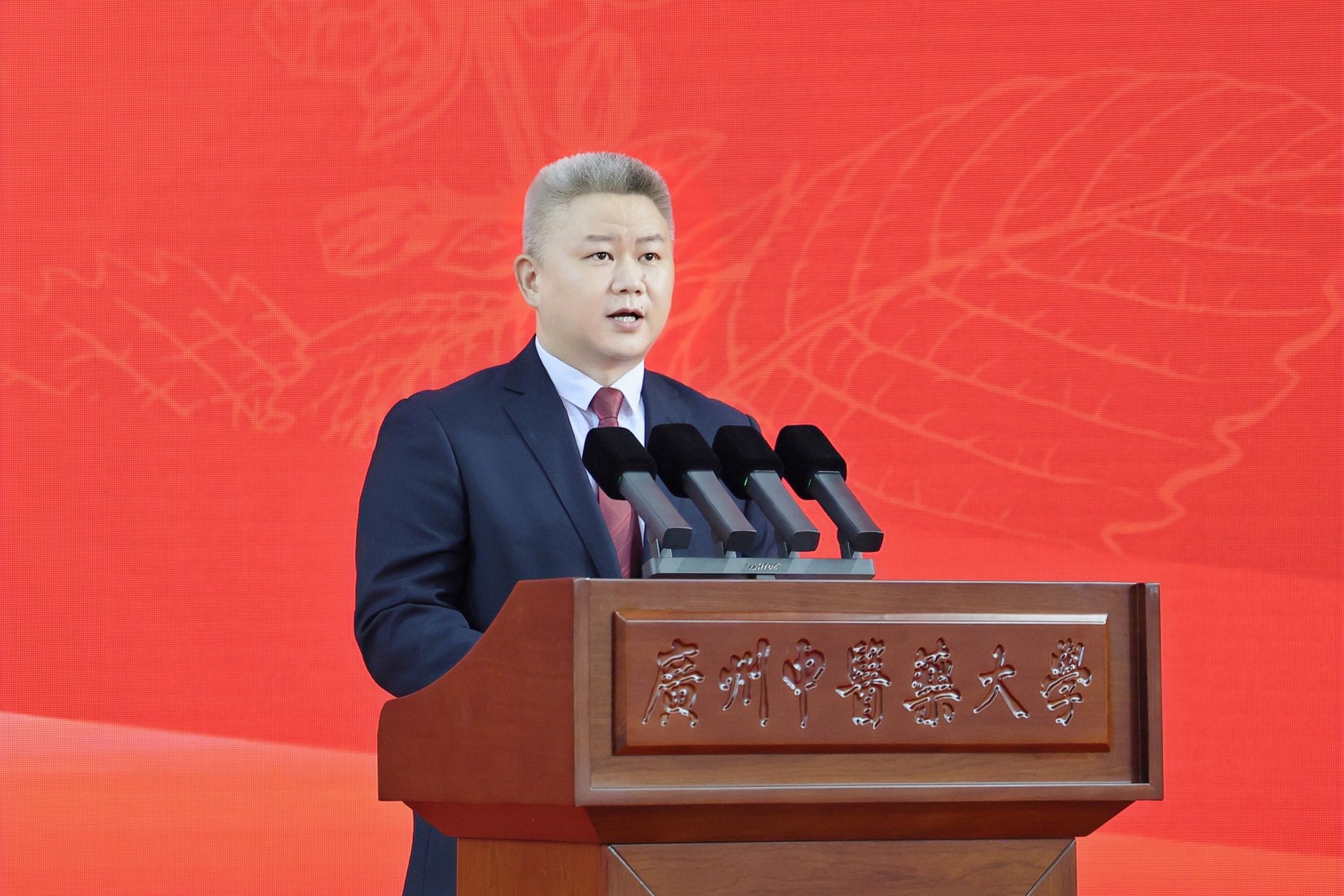 一是为天地立心,以仁爱涵养格局,传递医学温度。王宏斌以抗战期间1934届校友黄耀燊教授照顾患者、接济难民的故事,与同学们分享,耐心解释病情、以通俗语言化解患者焦虑所带来的温暖,比任何精密仪器都更能“治愈”人心。“唯有怀揣仁心,方能触达生命本质;唯有常怀悲悯,才能照亮人性之光,这才是中医人为天地立起的心碑!”二是为生民立命,以专业践行使命,用担当守护苍生。他以抗战时期校友李广海守护游击队员,“非典”时期叶欣护士舍己救人,以及疫情时期张忠德教授逆行驰援、全校师生并肩作战的故事,勉励同学们传承广中医人“为生民立命”的担当,读经典,做临床,跟名师,将书本知识转化为解决问题的能力,以专业知识为百姓健康遮风挡雨,用仁心仁术诠释“大医精诚”。三是为往圣继绝学,在传承中坚守,在创新中发展。作为中医药事业的新一代传人,要牢记中医药“创新”须扎根于经典,需结合国家时代需要,积极融合多学科前沿领域,让中医药既保留传统优势,又能应对时代的挑战,让古老智慧焕发现代光芒。四是为万世开太平,以开放姿态拥抱世界,助力人类健康。期待新一代中医药接班人传承瑰宝、汲古求新,将中医药文化弘扬光大。“同学们,让我们携起手来,为了个人的成长成才,为了国家的繁荣昌盛,为了民族的伟大复兴,奉献出我们的所有,让我们一家人,在一起,争一流,创造属于广中医人的历史新篇章!”