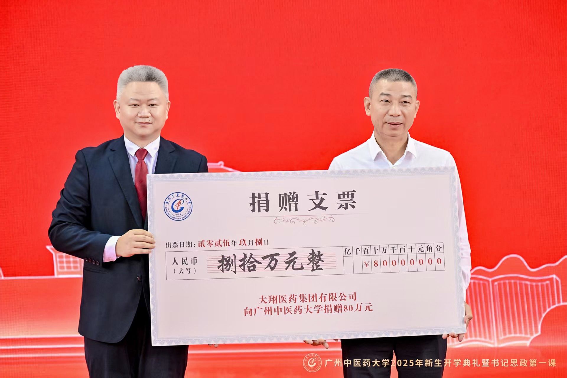 开学典礼后,陈文锋为2025级全体新生讲授题为《铭记抗战历史 传承岐黄薪火 在强国建设、民族复兴新征程上书写广中医人的青春华章》的“思政第一课”。