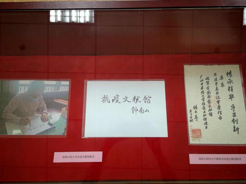 抗疫文献馆的墙上还展出了馆藏岭南抗疫古典医籍、李国桥教授与青蒿素研究推广、附属医院医护人员从非典到新冠的坚守与担当等珍贵图片78幅,让观众能够清晰地了解到中医药抗疫文化史。(摄影:陈庭深)