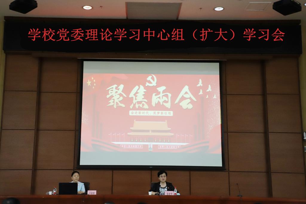 7月9日下午,学校召开党委理论学习中心组(扩大)学习会,学习习近平总书记在全国两会上的重要讲话和全国两会精神。全国政协委员卢传坚分享参加全国两会的心得体会。学校党委书记张建华主持会议并讲话。