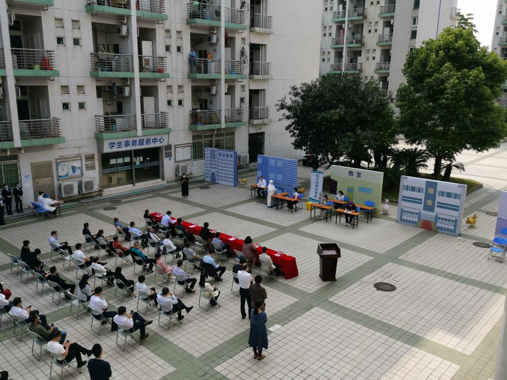 4月16日下午,beat365在大学城校区举行新型冠状病毒肺炎疫情应急处置演练。学校党委书记张建华出席演练并作点评,副校长潘华峰担任总指挥,在校全体校领导及有关职能部门负责人参加。本次演练旨在落实省教育厅关于全力防控疫情确保安全开学的工作部署,进一步提高学校应对新冠肺炎疫情的应急处置能力,加强校内各防控部门之间的协调和配合,全面提升学校防控新冠肺炎疫情的能力。