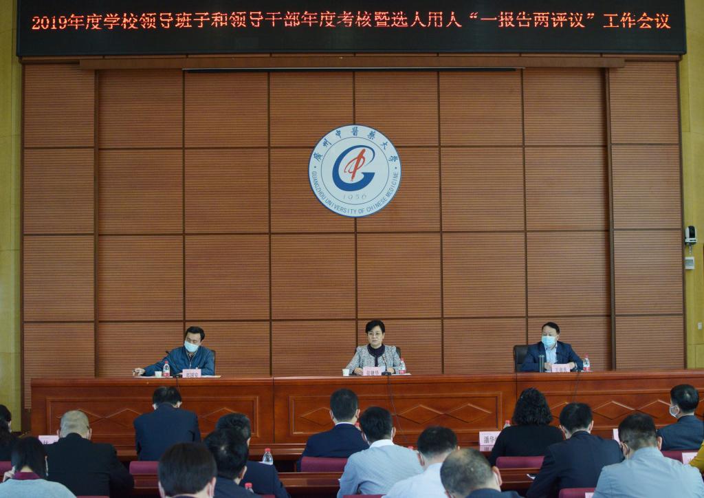 4月13日下午,2019年度学校领导班子和领导干部年度考核暨选人用人“一报告两评议”工作会议在大学城校区学术报告厅举行。学校党委书记张建华代表领导班子作2019年度班子工作总结并代表学校党委作2019年度干部选拔任用工作情况报告。学校党委副书记、校长王省良主持会议。