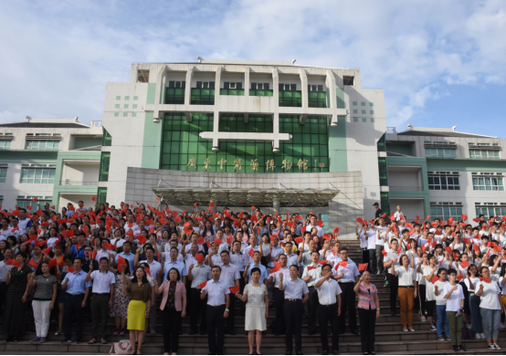 学校党委书记张建华、校长王省良等学校领导、党政管理部门负责人与各学院师生一起手执国旗,从《团结就是力量》到《歌唱祖国》,激情满怀地开展红歌拉歌对唱,激昂的歌声响彻校园,洋溢着对祖国母亲浓浓的爱意。