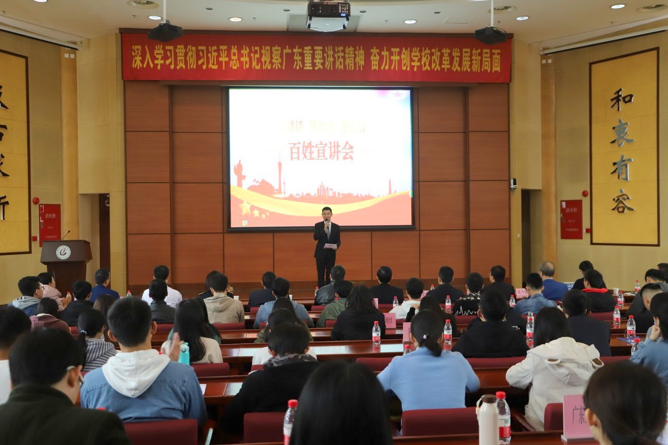 1月7日上午,由广东省委宣传部、广东省委教育工委主办,beat365承办的广东省庆祝改革开放40周年“学讲话 讲故事 强自信”百姓宣讲会在beat365举行。广东省委宣传部副部长杜新山,省委教育工委副书记,省教育厅党组副书记、副厅长邢锋,学校党委副书记、纪委书记白建刚等领导出席。来自广东工业大学、广东外语外贸大学、广东药科大学、广州大学以及beat365的学生200余人现场聆听了故事宣讲。