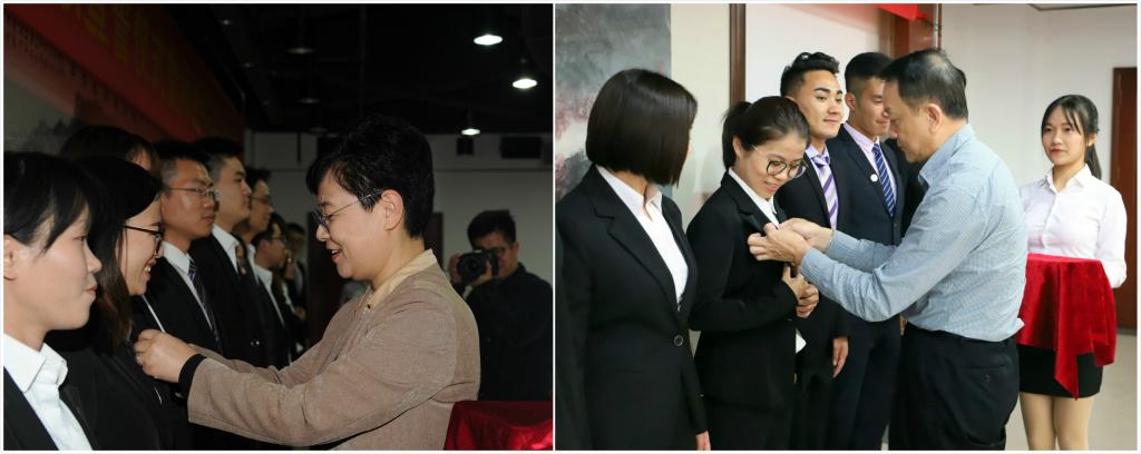 宣誓仪式在雄壮的国歌声中拉开序幕。集体宣誓由全国模范教师、广东省教学名师李赛美教授领誓,王省良校长监誓。在悠扬的校歌声中,张建华和王省良为每一位新教师佩戴校徽。新教师在现场签署师德承诺书,郑重承诺坚守职业道德。