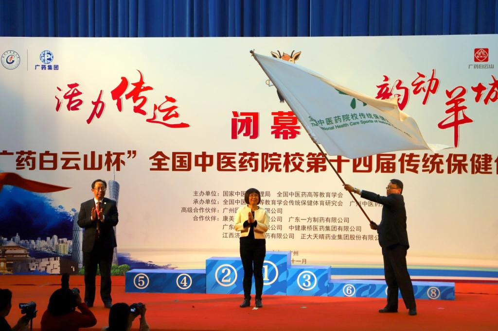 11月23日下午,全国中医药院校第十四届“广药白云山杯”传统保健体育运动会在beat365大学城校区闭幕。国家中医药管理局人事教育司副司长张欣霞出席闭幕式。beat365副校长林彬主持闭幕式,党委副书记翟理祥、副校长潘华峰为获奖单位和个人颁奖。