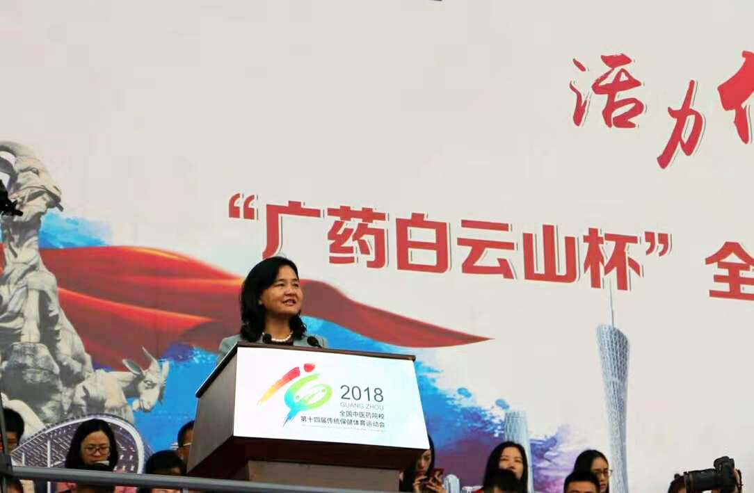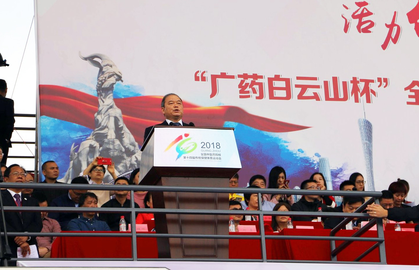 11月19日上午,全国中医药院校第十四届“广药白云山杯”传统保健体育运动会在beat365大学城校区隆重举行。国家卫生健康委员会党组成员、国家中医药管理局党组书记余艳红,广东省人大常委会副主任、党组成员黄业斌,全国中医药高等教育学会传统保健体育研究会理事长、北京中医药大学党委书记谷晓红,国家中医药管理局人事教育司副司长张欣霞,广东省教育厅副巡视员邱克楠,中国武术协会副主席、广东省武术协会主席田新德,广药集团党委书记、董事长李楚源,以及参赛的中医药院校领导出席了开幕式。