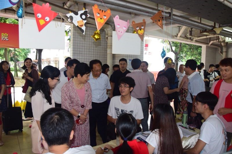 学校党委书记张建华、副书记翟理祥到迎新现场看望新生,与学生和学生家长亲切交谈,勉励同学们尽快完成从高中到大学生活的转变,尽快融入大学生活。他们在各学院学生报到点,详细了解各项接待工作,希望大家尽心尽力为新生及家长提供更加周到、贴心的服务,要把入学教育工作做深、做细、做出实效。