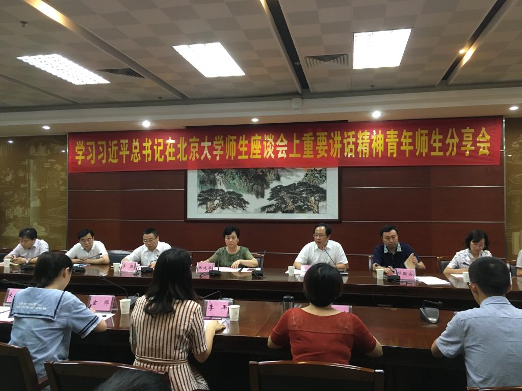 5月16日下午,学校在大学城校区办公楼102会议室举行青年师生学习“习近平总书记在北京大学师生座谈会上重要讲话精神”分享会。学校党委书记张建华、副书记翟理祥,部分管理部门、二级学院负责人,第22届团委委员以及青年师生代表参加了会议。