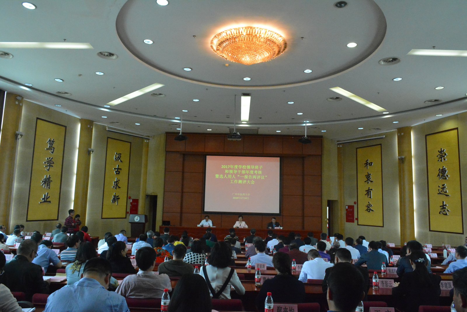 3月14日下午, 2017年度学校领导班子及其成员年度考核暨选人用人“一报告两评议”工作测评大会在大学城校区学术报告厅举行。学校党委书记张建华主持会议,省委教育工委年度考核指导组邓惠毅处长,刘文基科长出席会议。