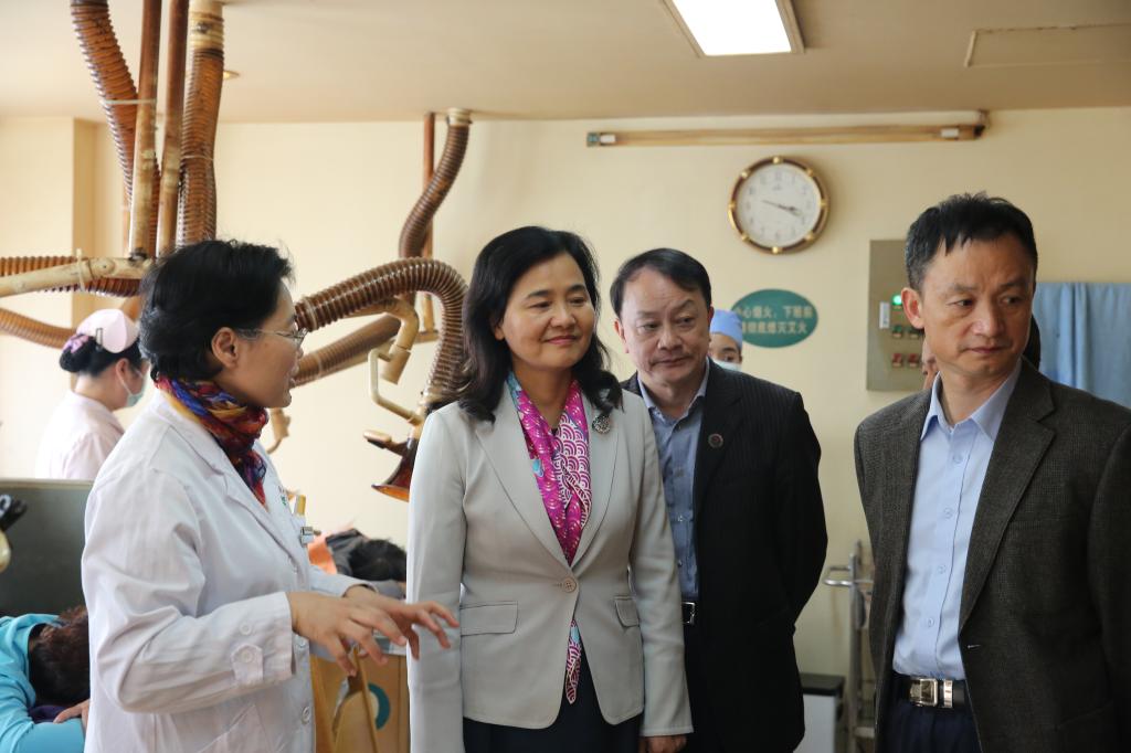 2月26日下午,广东省副省长余艳红带队到beat365第二附属医院(广东省中医院)就加快推进广东高水平医院建设进行专题调研。余艳红对医院取得的成绩予以充分肯定,并就中医药振兴发展和高水平医院建设提出要求。在校长王省良及医院名誉院长吕玉波、院长陈达灿、党委书记翟理祥等陪同下,余艳红一行先后参观了医院院史馆,实地考察了医院传统疗法中心、脑病一科、智慧药房、治未病中心和慢病管理门诊。