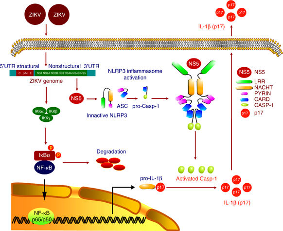 Fig1 ZIKV感染激活NLRP3炎症小体诱导炎症反应的分子机制