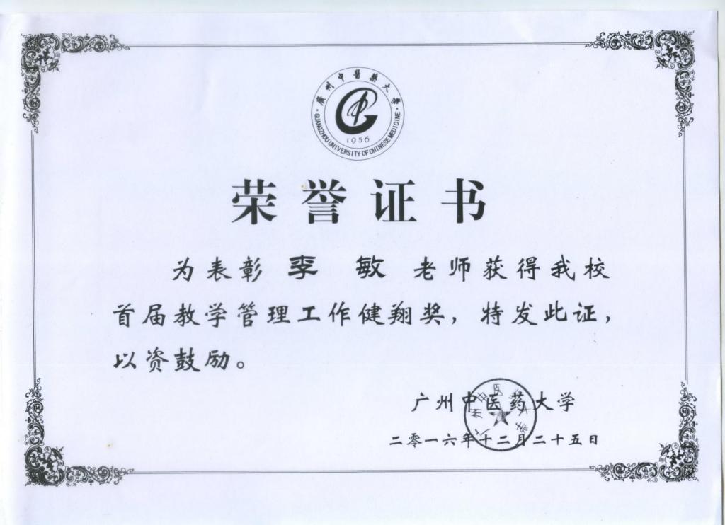 李敏教授重视教育研究,致力于现代中医药人才的培养,注重创新,结合现代中医药发展趋势及社会发展潮流,在专业设置上坚持以社会需求为导向,坚持多层次多元化方向,逐步建立和完善的针灸推拿学科和康复学科教育结构,包括培养国际化认证的针灸推拿学和康复应用型人才。以加强制度建设为切入点实现教学管理的规范化和科学化,以改革教学内容和课程体系为突破口全面推进教学改革,以提高教学质量为目标推进教学研究,以加强临床实践教学为重点申报国家级实验教学示范中心,最终建立国内领先的针灸康复学科教学平台。