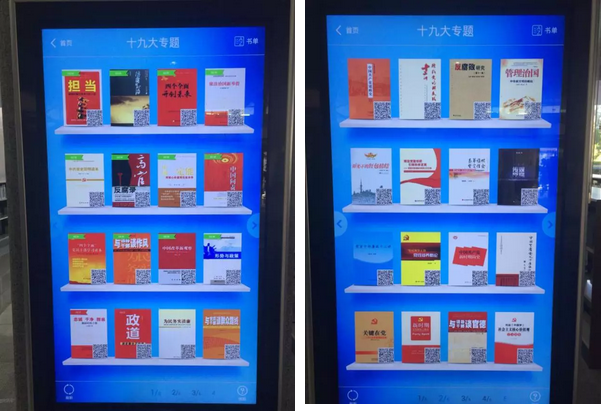 据了解,十九大电子书专题在两个校区图书馆的电子借阅机均有设立且可供免费下载阅读,主要是关于治国理政、党建和干部作风的图书,目前已有95本。读者只需扫描点击图书后出现的二维码,通过提示下载一个APP,就可以保存在自己的手机上随时阅读了,非常方便。