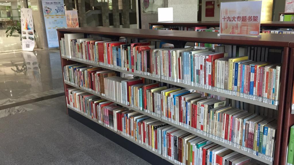 师生喜爱的图书馆,也是学习十九大精神的好去处。图书馆除了十九大期间通过中庭大屏幕播放实况,目前还设立了十九大电子书专题和图书专柜,方便大家查阅有关资料。