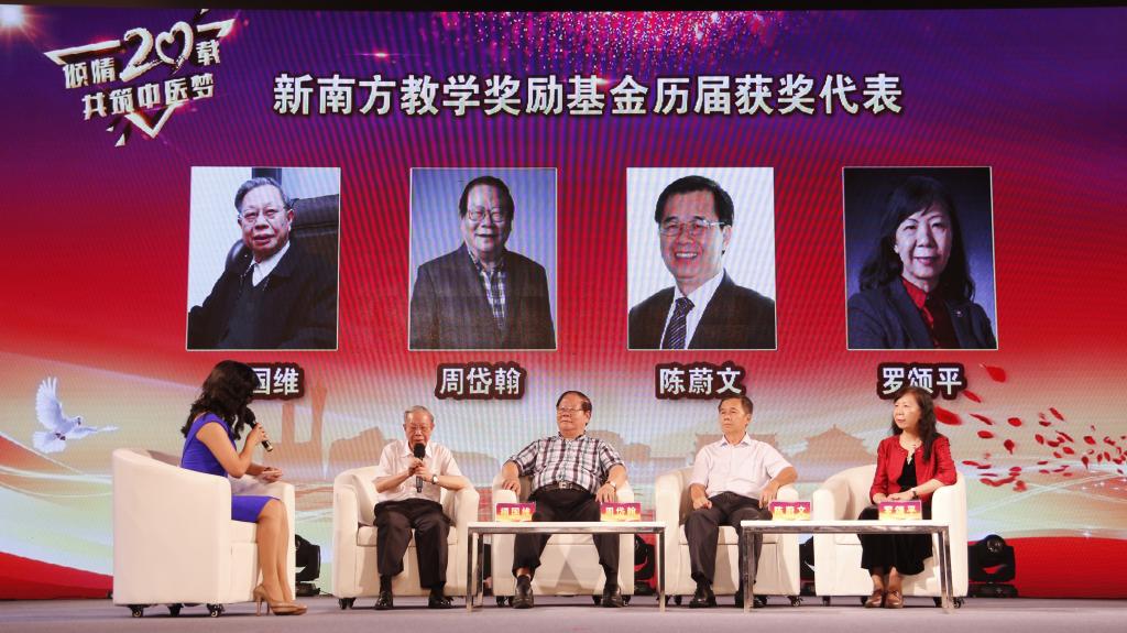 新南方教学奖励基金由著名校友朱拉伊于1997年创立,为感谢其对母校的杰出贡献,张建华代表学校将广东省书法家协会副主席陈春盛的作品赠予朱拉伊。穿插着精彩的歌舞表演,12位历届新南方教学奖励基金获奖代表上台接受访谈,其中包括禤国维教授、周岱翰教授两位国医大师,beat365优秀教师陈蔚文、罗颂平、李赛美、全世建、蓝海、孙锋,优秀校友王锐旭、史俊恒、卢炎华、黄超原,他们的奋斗历程深深地感染了现场观众。