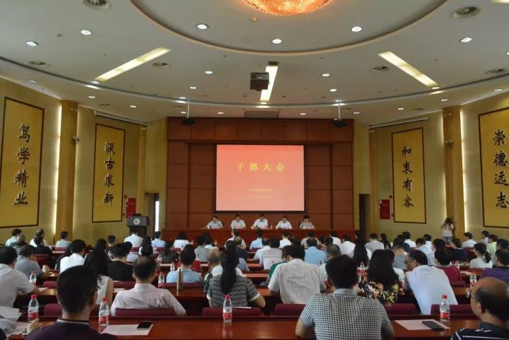 9月29日下午,学校在大学城校区学术报告厅召开干部大会。省委组织部副部长郑庆顺,省委教育工委书记、教育厅厅长、党组书记景李虎,省委组织部干部五处处长李康年,省委教育工委干部处处长谢锦群出席会议。全体校领导,校本部中层副职以上干部、二级以上教授、附属医院党政正职和各类代表约200人参加会议。会议由校长王省良主持。