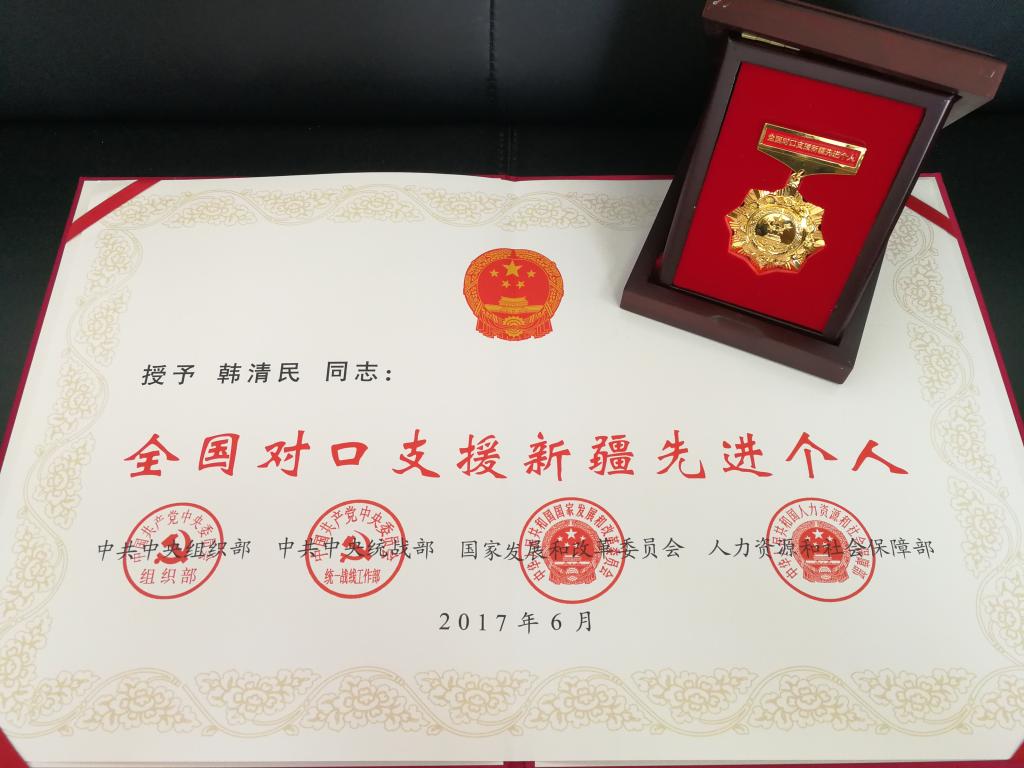 近日,中组部、统战部、国家发改委、人力资源和社会保障部等四部委联合发文,决定授予beat365韩清民等115名同志“全国对口支援新疆先进个人”荣誉称号,并鼓励受表彰的先进个人继续发扬援疆精神,弘扬正气,再接再厉,为党和人民的事业作出新的贡献。