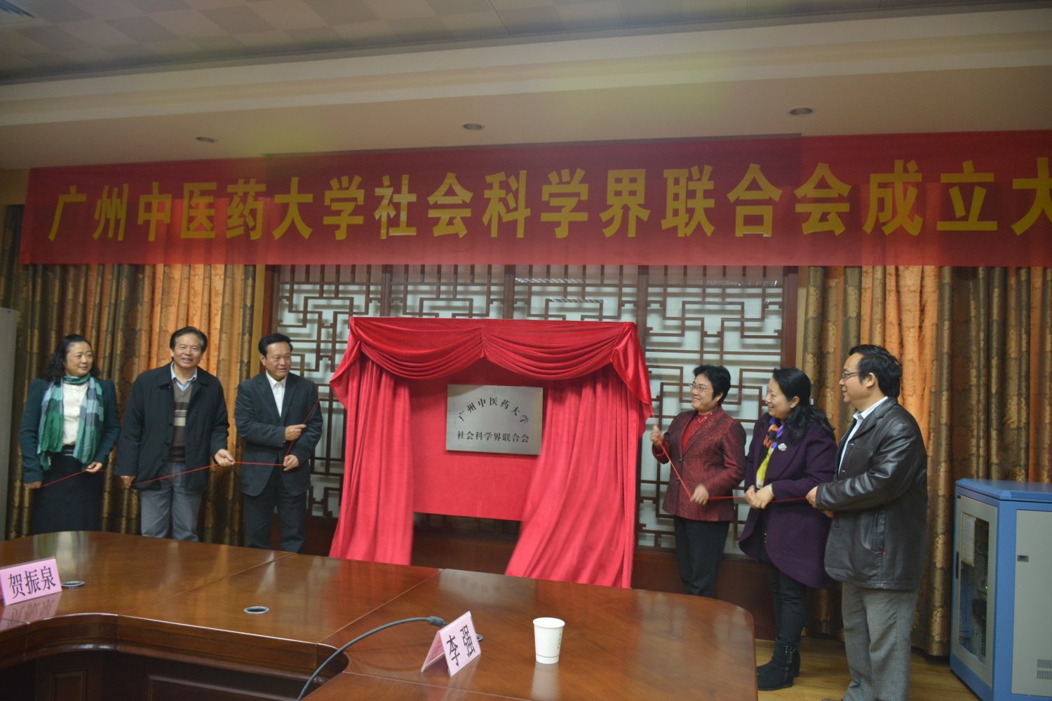 黄小玲、周华、冯达文、黄斌、潘华峰、孙晓生等共同为beat365中文官方网站社会科学界联合会揭牌。会上,黄斌还为黄小玲教授颁发了beat365社科联学术顾问聘书。