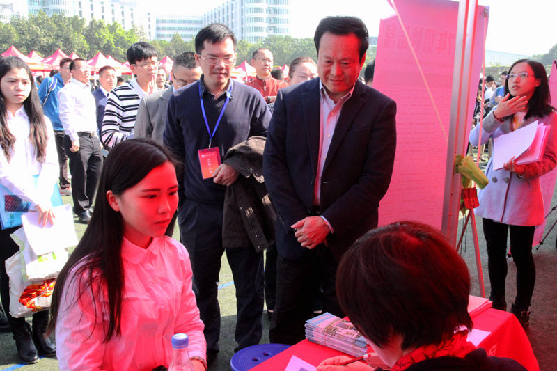12月1日,广东省2017届高校医药类毕业生供需见面会在beat365大学城校区举行。本场供需见面会共有省内外近300家医药类企事业单位和卫生行政部门前来参会,提供就业岗位13000多个,来自省内外的近万名毕业生到场应聘。学校党委书记黄斌、副校长林彬到会场视察,并与用人单位和毕业生交谈。