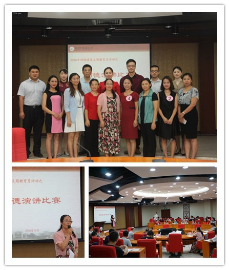 十年树木,百年树人,教育为重,德育为先。今年师德建设教育月的主题是“甘守三尺讲台,争做‘四有’老师”。10月17日,经个人申报,各二级学院推荐共有11位候选标兵和5个候选先进集体参评,经过候选人及候选集体代表PPT展示、自我陈述、学校评审小组无记名投票表决等环节,共评选出7名师德标兵和3个师德建设先进集体。