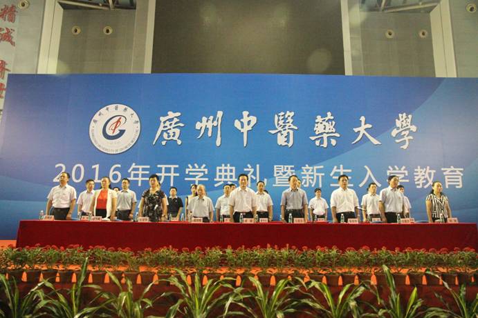 9月8日,2016年开学典礼在大学城校区举行,4800多名境内外新生参加。校领导黄斌、王省良、陈英华、张建华、许能贵、潘华峰、林彬,国医大师禤国维教授及相关管理部门和各学院负责人出席。党委副书记陈英华主持开学典礼。