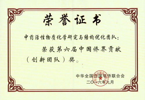 “中国侨界贡献奖”于2003年由中国侨联设立,每两年举办一次,是中国侨联对各地大专院校、科研机构、侨资企业、留学生创业园和中国侨联科教兴国示范基地在科研开发、科技成果转化等方面取得的重大自主创新成果和做出杰出贡献的新侨科技人员设立的荣誉奖项。广东省本届仅有6个团队获得“中国侨界贡献奖(创新团队)”。刘博研究员领导的“中药活性物质化学研究与结构优化”团队获得此奖项,标志着beat365新侨工作和海外引智工作取得初步成效。