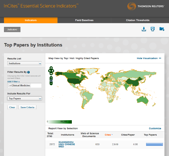 本轮全球共有3790所研究机构进入ESI临床医学学科世界前1%行列,beat365中文官方网站国际排名第2872位。 2006年1月1日至2016年04月30日期间,由beat365师生参与发表的SCI和SSCI论文共有650篇,总被引次数为2,649次,篇均被引次数为4.08次。在临床医学领域,中国共有70所科研机构入榜,beat365位列第60位。
