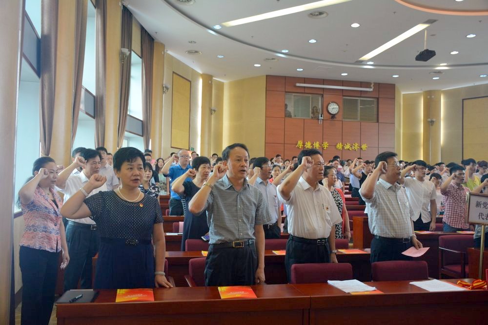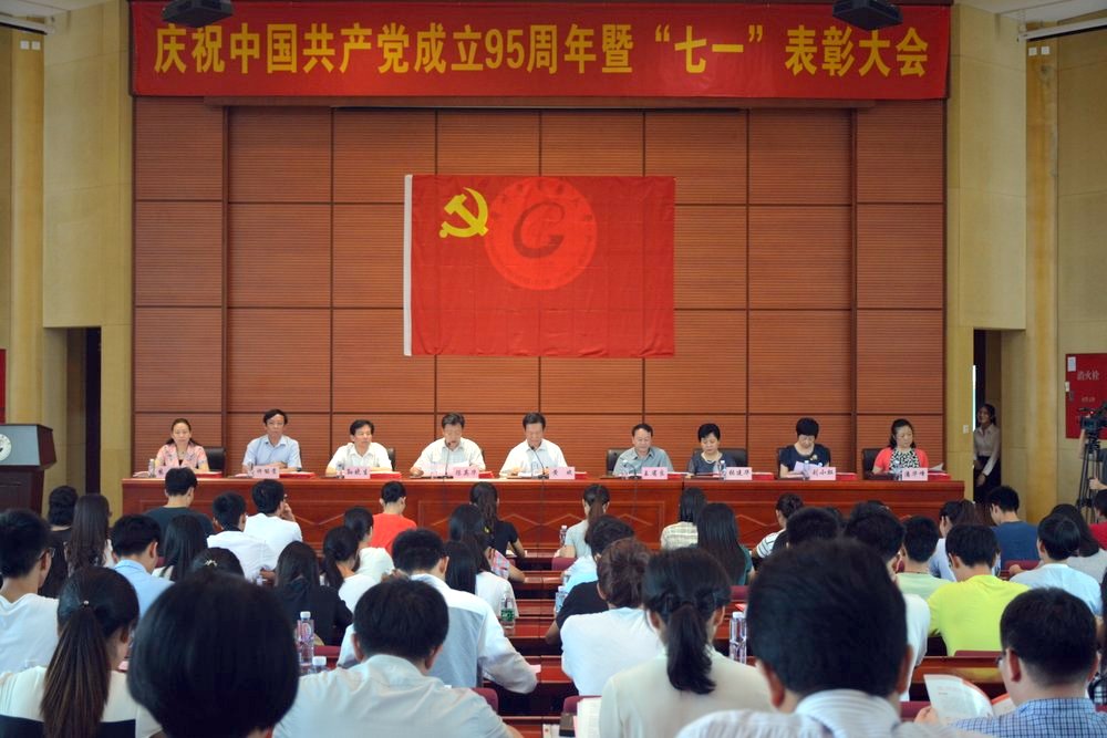 校长王省良主持大会。会场庄严,党旗鲜红,61名新党员代表入党宣誓,老党员同声重温入党誓词。党委副书记陈英华宣读了学校党委《关于表彰先进基层党组织、优秀共产党员、优秀党支部书记和优秀党务工作者的决定》,直属学工部(学生处、学生就业指导中心、学生心理健康辅导中心)、团委党支部等20个基层党组织被授予“先进基层党组织”称号,陈晔等45位同志荣获“优秀共产党员”称号,梁沛华等15位同志被评为“优秀党支部书记”,范春等10位同志被评为“优秀党务工作者”。