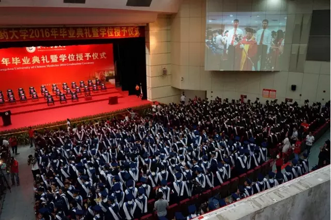 6月23-24日,2016年毕业典礼暨学位授予仪式在大学城校区大会堂隆重举行,4515名毕业生一一从校长手中接过毕业证书,留下青春岁月中最期待的合影,旋即向台上的教授和台下的同学深鞠一躬,挥手作别。杏林春暖依旧在名医壁上缓缓流淌,橘井泉香仍然在博物馆中静静蔓延,但他们,将告别彩虹桥和古榕园,转而踏上新的人生征程。