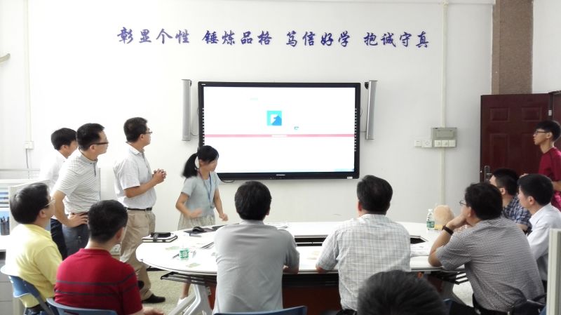 佛山科技学院党委副书记范彦斌及相关职能部门负责人与陈英华一行进行了座谈并介绍了广东高校“易班”发展中心情况。该中心自2014年底启动“易班”建设工作以来,帖文数超过4716条,日均活跃超过1000人,学生自主开发轻应用项目75个,线上线下活动50多场,参与学生2万人次,该项工作取得重要成效,形成实效性强、黏合度高,学生广泛参与、共建共享、沟通互动的交流学习互动社区,创新了大学生网络思想政治教育工作,运用互联网思维加强学生教育管理工作已经成为习惯。会后,陈英华一行参观了“易班”发展中心和邑谷互动校园-佛科院体验中心。