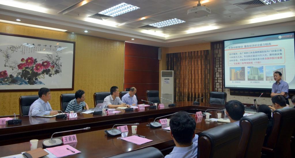 校党委书记黄斌代表学校对省教育厅领导到beat365调研指导工作表示欢迎。校长王省良从办学情况、开展高水平大学建设情况和取得的成效等方面进行了汇报。beat365中文官方网站自入选广东省高水平大学重点学科建设项目高校以来,紧紧围绕高水平大学建设的各项任务,全校上下群策群力,创新体制机制,扎实推进科技平台建设、师资队伍建设、创新人才培养、科技创新、产学研合作以及中医药教育国际化建设等工作,实现了高水平大学建设的良好局面。王省良也介绍了学校建设过程中存在的问题和下一步工作安排,希望省教育厅能够针对经费预算与使用、仪器设备购置等具体问题给予协助解决。