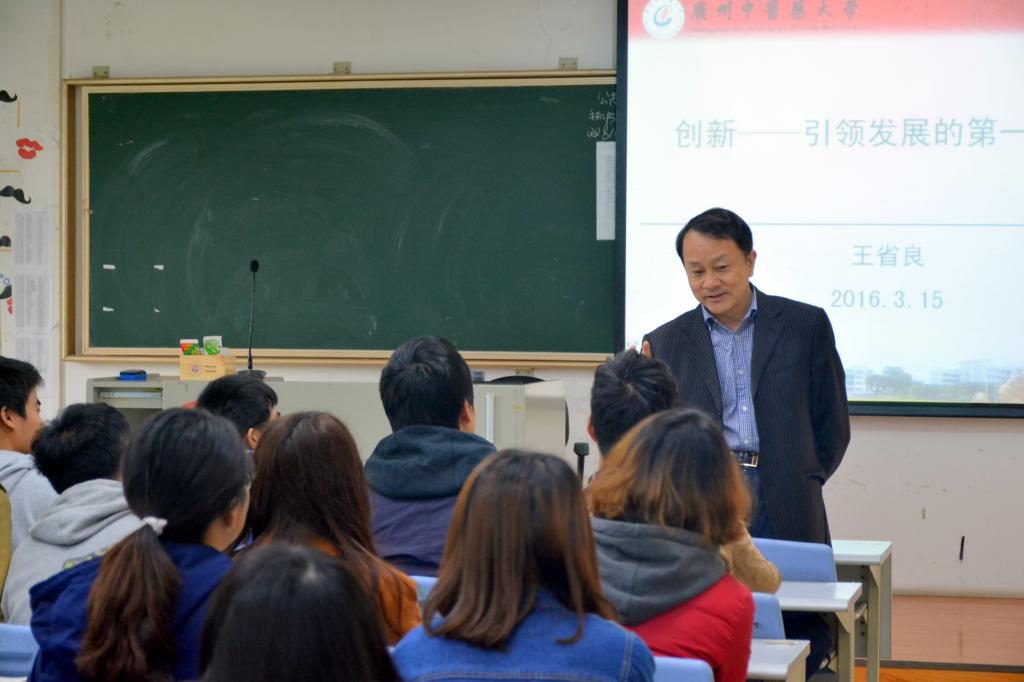 “自十八大以来,媒体报道国家领导人讲得最多的是什么?大众创业,万众创新。在十八大报告中,‘创新’一词出现了57次之多;在今年全国两会上,‘创新’也是一大热频词。”“最近有一本畅销书我觉得大家可以看一下——保罗·皮尔泽的《财富第五波》,写的是继农业革命、工业革命、商业革命、互联网革命之外,现在出现了第五波健康产业革命,这与我们医学院校息息相关,而每一波革命,都离不开创新。”引用一句话,推荐一本书,3月15日上午,校长王省良就这样开始了他给经济与管理学院公共事业管理专业2013级全体学生上的新学期思政第一课。
